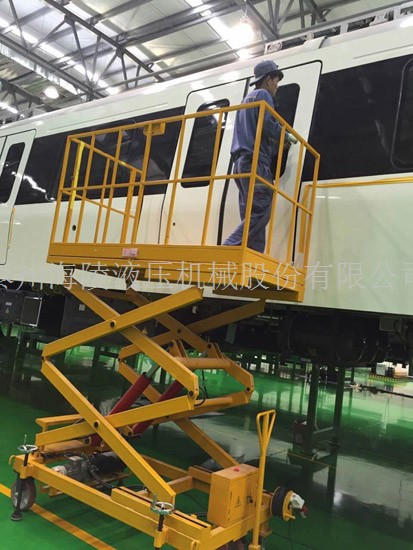 500KG剪叉式液壓升降平臺應用于中車南寧軌道交通