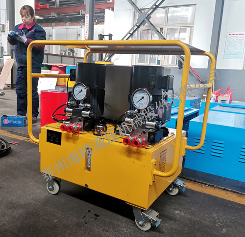 我公司生產的超高壓泵站采用符合液壓系統要求的液壓油作媒介,由電機經泵柱塞泵送出符合要求流量與壓力,供液壓系統使用。