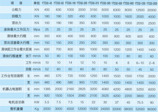 我公司生產(chǎn)制作的YTD32系列四立柱液壓機(jī)適用于可塑性材料的壓制工藝,如沖裁、彎曲、翻邊、薄板拉伸等。也可從事于校正、壓裝、砂輪成型、冷擠金屬零件成型,塑料制品及粉末制品的壓制成型工藝。